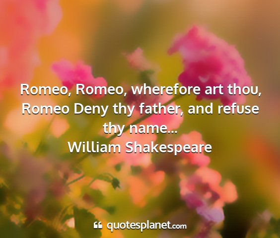 Romeo, Romeo, wherefore art thou, Romeo Deny thy father, and refuse thy name...