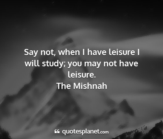 Say not, when I have leisure I will study; you may not have leisure.