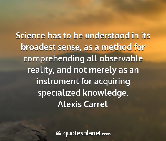 Science has to be understood in its broadest sense, as a method for comprehending all observable reality, and not merely as an instrument for acquiring specialized knowledge.Alexis Carrel
