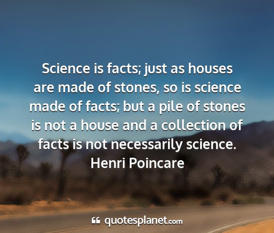 Science is facts; just as houses are made of stones, so is science made of facts; but a pile of stones is not a house and a collection of facts is not necessarily science.Henri Poincare