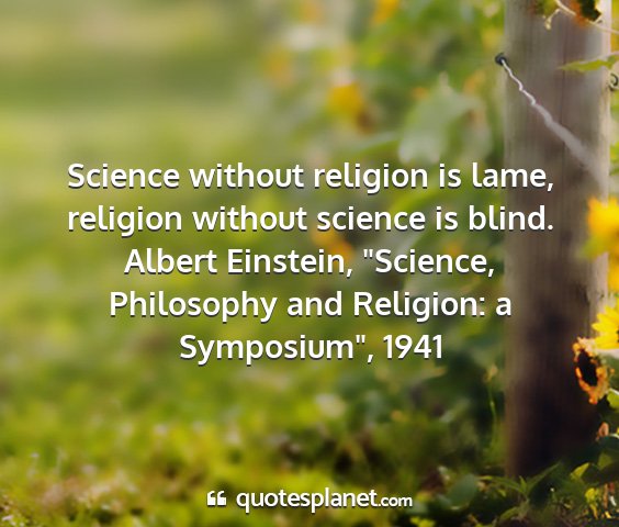 Science without religion is lame, religion without science is blind.Albert Einstein, "Science, Philosophy and Religion: a Symposium", 1941