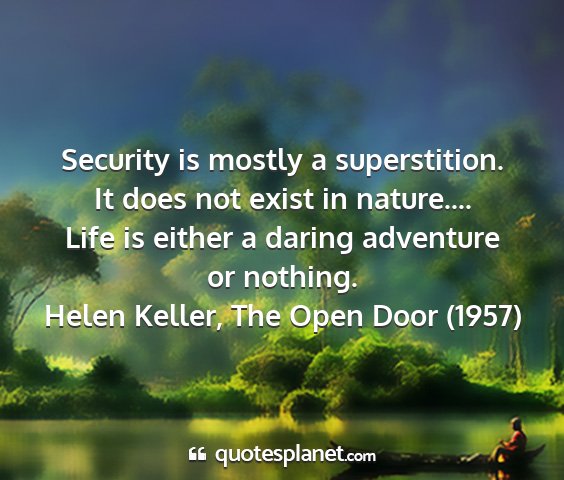 Security is mostly a superstition. It does not exist in nature.... Life is either a daring adventure or nothing.Helen Keller, The Open Door (1957)