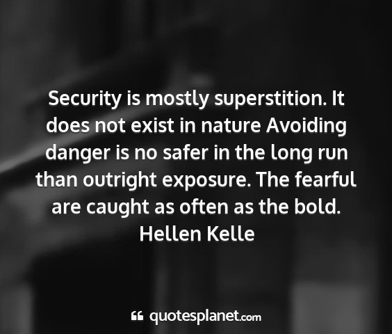 Security is mostly superstition. It does not exist in nature Avoiding danger is no safer in the long run than outright exposure. The fearful are caught as often as the bold.Hellen Kelle