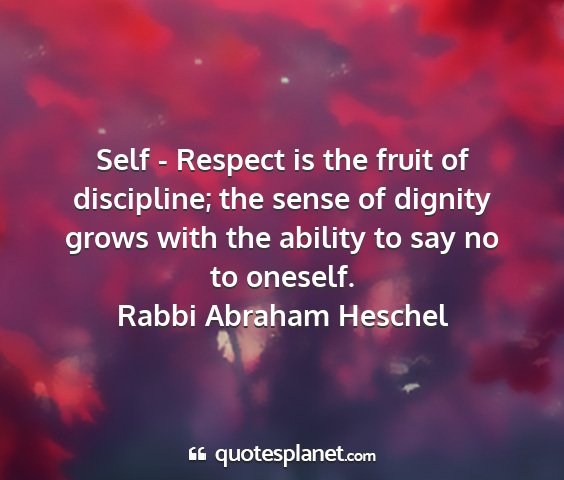 Self - Respect is the fruit of discipline; the sense of dignity grows with the ability to say no to oneself.Rabbi Abraham Heschel