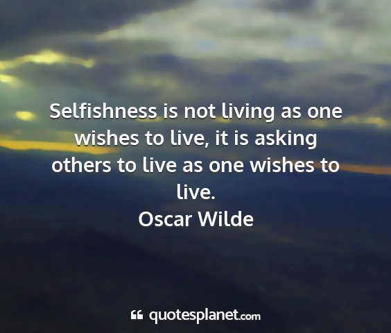 Oscar wilde - selfishness is not living as one wishes to live,...