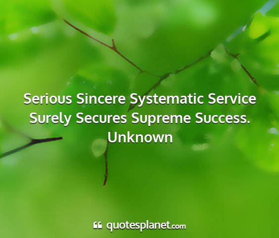 Serious Sincere Systematic Service...