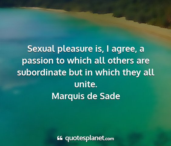 Sexual pleasure is, I agree, a passion to which all others are subordinate but in which they all unite.Marquis de Sade