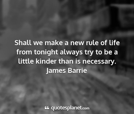 Shall we make a new rule of life from tonight always try to be a little kinder than is necessary.James Barrie