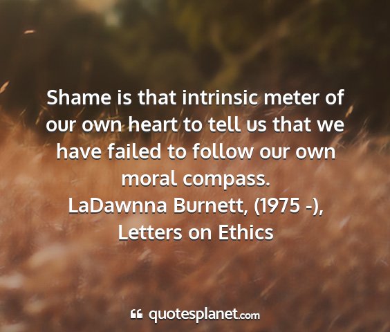 Shame is that intrinsic meter of our own heart to tell us that we have failed to follow our own moral compass.LaDawnna Burnett, (1975 -), Letters on Ethics