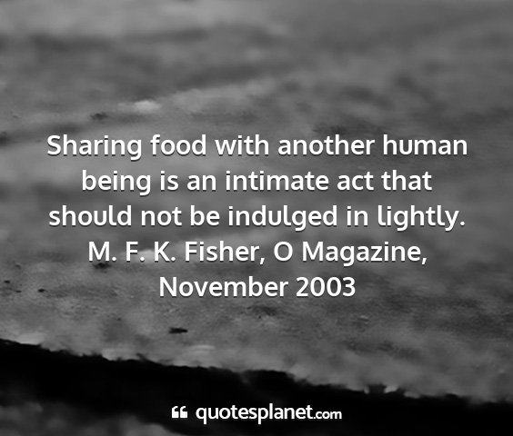 Sharing food with another human being is an intimate act that should not be indulged in lightly.M. F. K. Fisher, O Magazine, November 2003