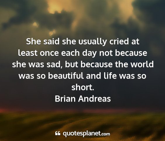 She said she usually cried at least once each day not because she was sad, but because the world was so beautiful and life was so short.Brian Andreas