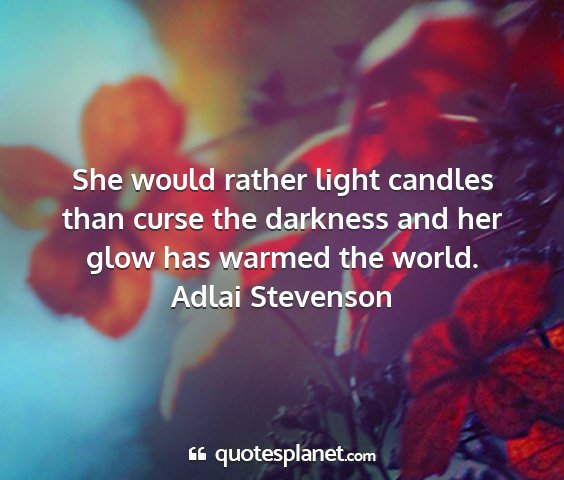 She would rather light candles than curse the darkness and her glow has warmed the world.Adlai Stevenson