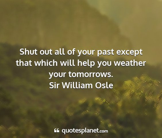 Shut out all of your past except that which will help you weather your tomorrows.