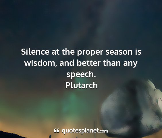 Silence at the proper season is wisdom, and better than any speech.