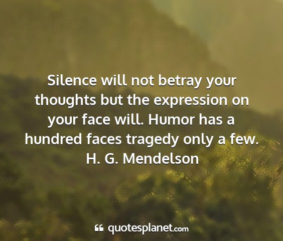 Silence will not betray your thoughts but the expression on your face will. Humor has a hundred faces tragedy only a few.H. G. Mendelson