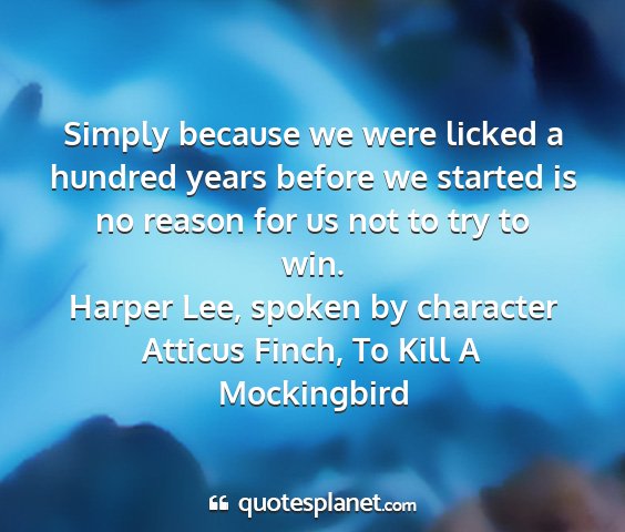 Simply because we were licked a hundred years before we started is no reason for us not to try to win.Harper Lee, spoken by character Atticus Finch, To Kill A Mockingbird