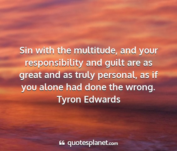 Sin with the multitude, and your responsibility and guilt are as great and as truly personal, as if you alone had done the wrong.Tyron Edwards