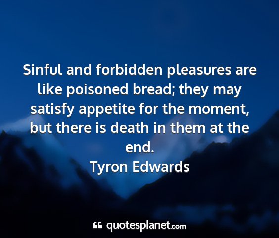 Sinful and forbidden pleasures are like poisoned bread; they may satisfy appetite for the moment, but there is death in them at the end.Tyron Edwards