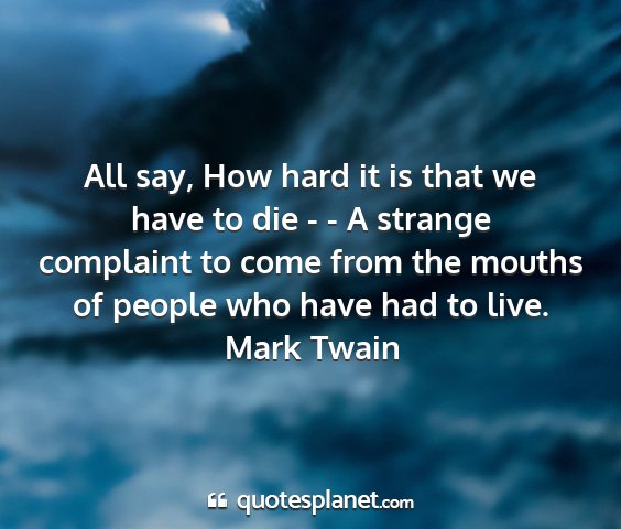 All say, How hard it is that we have to die - - A strange complaint to come from the mouths of people who have had to live.Mark Twain