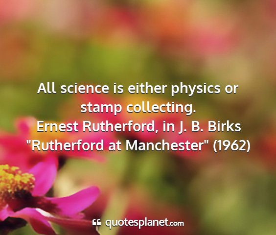 All science is either physics or stamp collecting.Ernest Rutherford, in J. B. Birks "Rutherford at Manchester" (1962)
