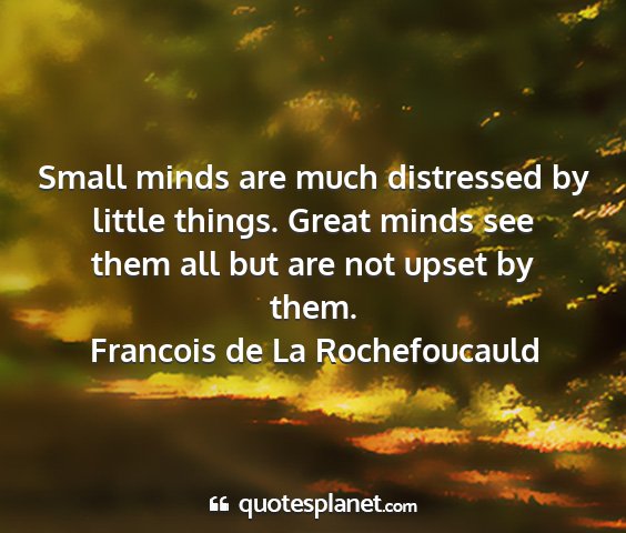 Small minds are much distressed by little things. Great minds see them all but are not upset by them.Francois de La Rochefoucauld