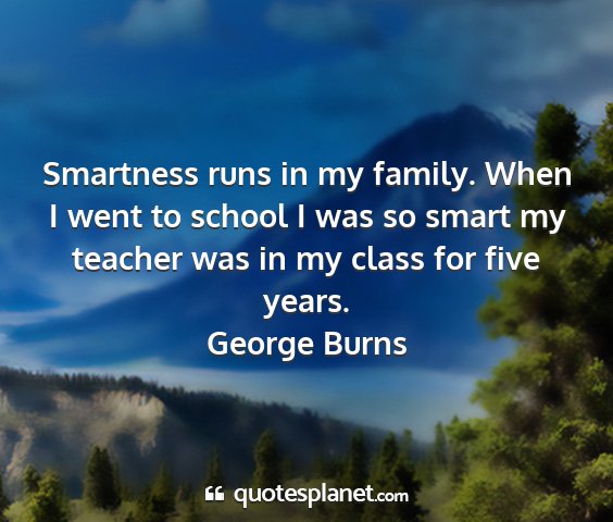 Smartness runs in my family. When I went to school I was so smart my teacher was in my class for five years.George Burns