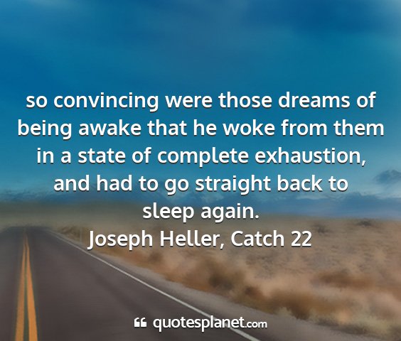 so convincing were those dreams of being awake that he woke from them in a state of complete exhaustion, and had to go straight back to sleep again.Joseph Heller, Catch 22