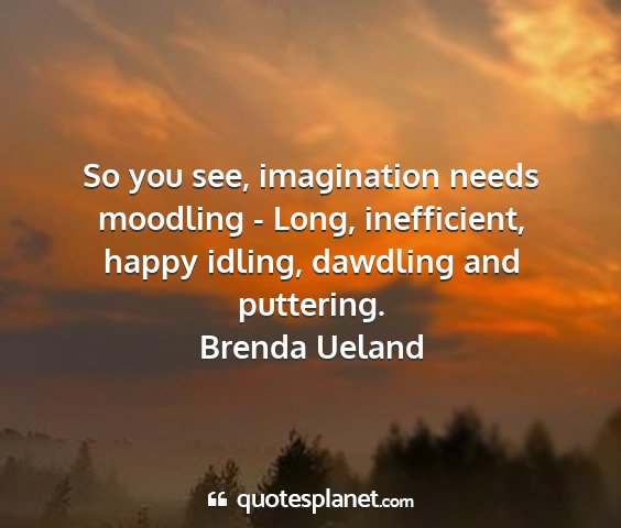 So you see, imagination needs moodling - Long, inefficient, happy idling, dawdling and puttering.Brenda Ueland
