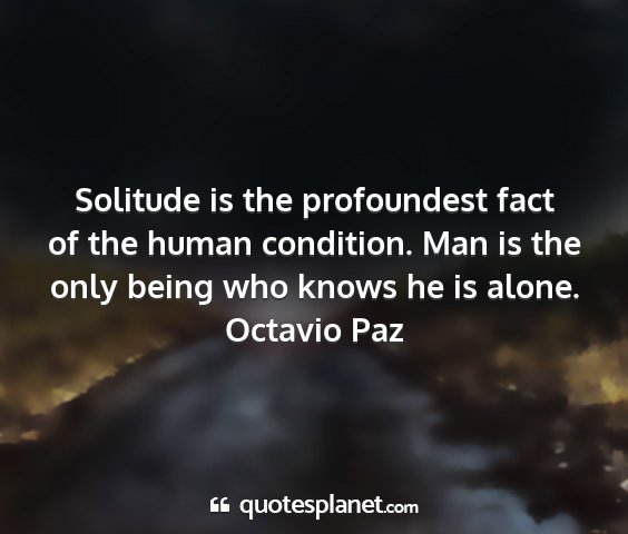 Solitude is the profoundest fact of the human condition. Man is the only being who knows he is alone.Octavio Paz