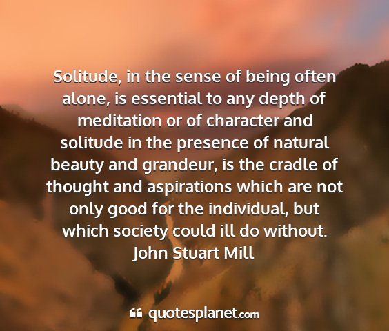 Solitude, in the sense of being often alone, is essential to any depth of meditation or of character and solitude in the presence of natural beauty and grandeur, is the cradle of thought and aspirations which are not only good for the individual, but which society could ill do without.John Stuart Mill