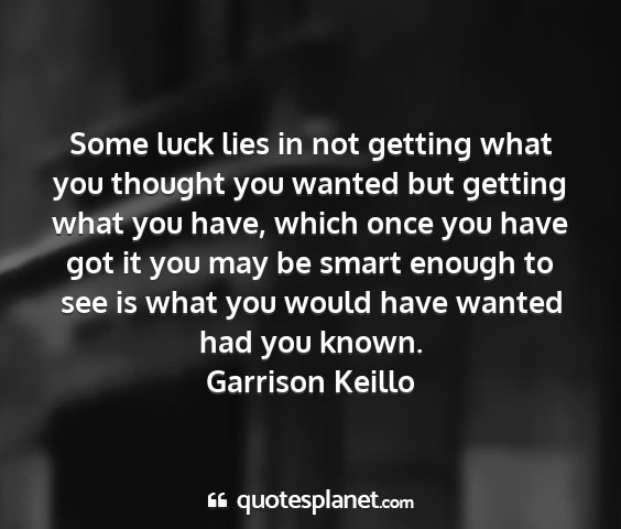 Some luck lies in not getting what you thought you wanted but getting what you have, which once you have got it you may be smart enough to see is what you would have wanted had you known.Garrison Keillo