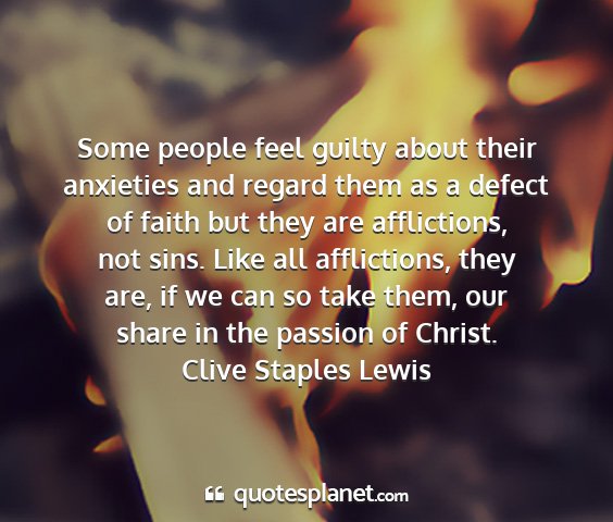 Some people feel guilty about their anxieties and regard them as a defect of faith but they are afflictions, not sins. Like all afflictions, they are, if we can so take them, our share in the passion of Christ.Clive Staples Lewis