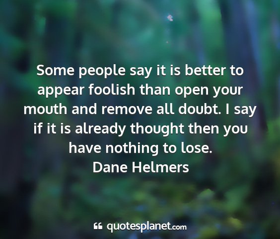 Some people say it is better to appear foolish than open your mouth and remove all doubt. I say if it is already thought then you have nothing to lose.Dane Helmers