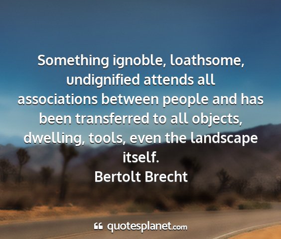Something ignoble, loathsome, undignified attends all associations between people and has been transferred to all objects, dwelling, tools, even the landscape itself.Bertolt Brecht