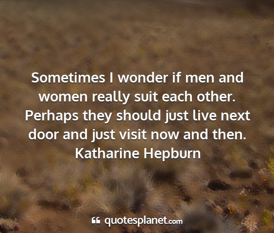 Sometimes I wonder if men and women really suit each other. Perhaps they should just live next door and just visit now and then.Katharine Hepburn
