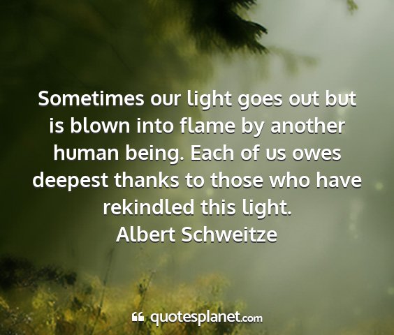 Sometimes our light goes out but is blown into flame by another human being. Each of us owes deepest thanks to those who have rekindled this light.Albert Schweitze