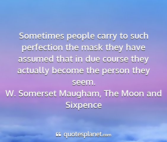 Sometimes people carry to such perfection the mask they have assumed that in due course they actually become the person they seem.W. Somerset Maugham, The Moon and Sixpence