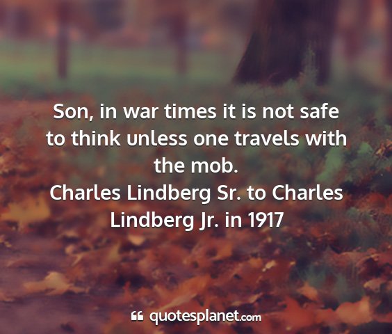 Son, in war times it is not safe to think unless one travels with the mob.Charles Lindberg Sr. to Charles Lindberg Jr. in 1917