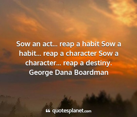 Sow an act... reap a habit Sow a habit... reap a character Sow a character... reap a destiny.George Dana Boardman