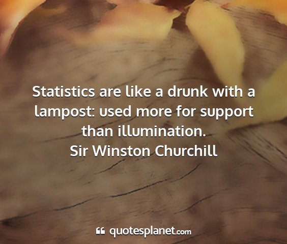 Statistics are like a drunk with a lampost: used more for support than illumination.Sir Winston Churchill