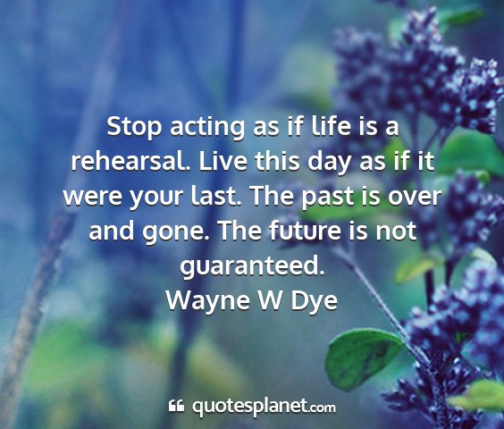 Stop acting as if life is a rehearsal. Live this day as if it were your last. The past is over and gone. The future is not guaranteed.Wayne W Dye