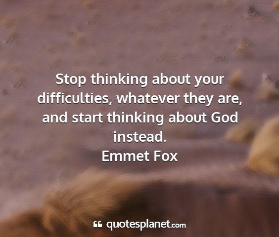 Stop thinking about your difficulties, whatever they are, and start thinking about God instead.Emmet Fox