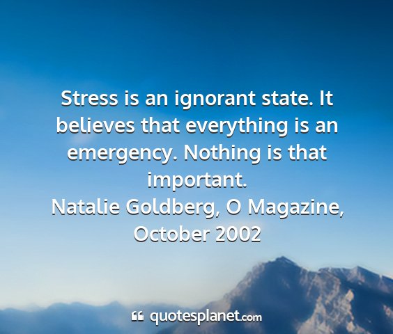 Stress is an ignorant state. It believes that everything is an emergency. Nothing is that important.Natalie Goldberg, O Magazine, October 2002