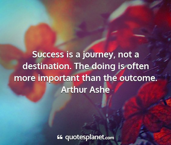 Success is a journey, not a destination. The doing is often more important than the outcome.Arthur Ashe