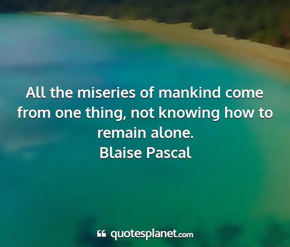 All the miseries of mankind come from one thing, not knowing how to remain alone.