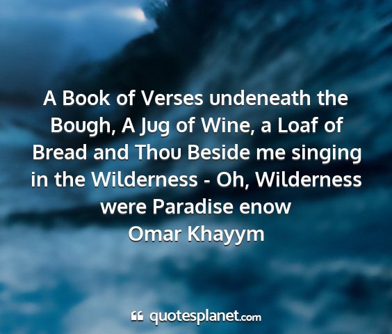 A Book of Verses undeneath the Bough, A Jug of Wine, a Loaf of Bread and Thou Beside me singing in the Wilderness - Oh, Wilderness were Paradise enowOmar Khayym