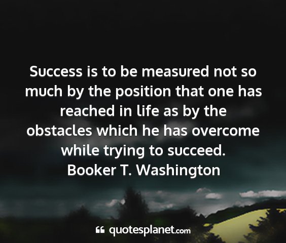 Success is to be measured not so much by the position that one has reached in life as by the obstacles which he has overcome while trying to succeed.Booker T. Washington