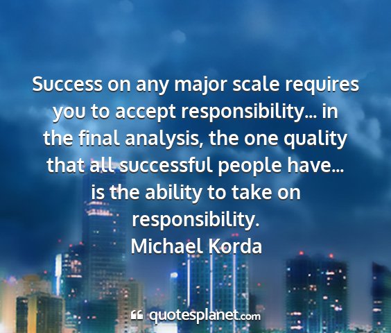 Success on any major scale requires you to accept responsibility... in the final analysis, the one quality that all successful people have... is the ability to take on responsibility.Michael Korda