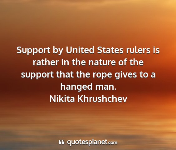Support by United States rulers is rather in the nature of the support that the rope gives to a hanged man.Nikita Khrushchev