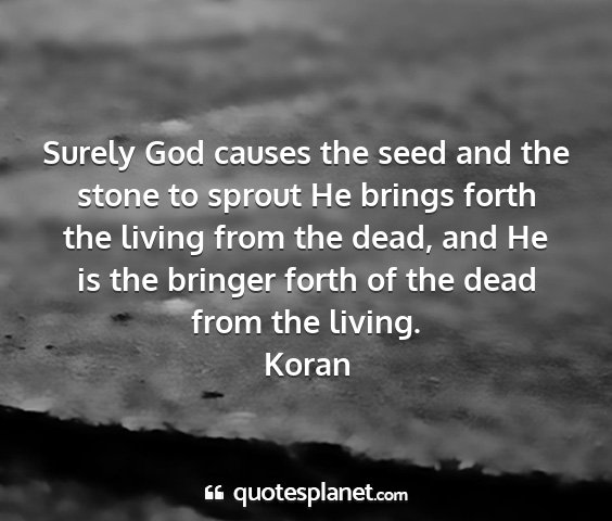 Surely God causes the seed and the stone to sprout He brings forth the living from the dead, and He is the bringer forth of the dead from the living.Koran